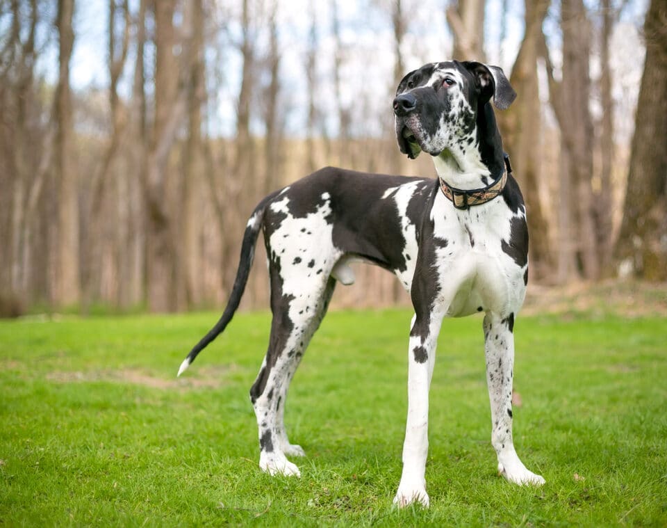 Meet the Harlequin Great Dane, a stunning black and white version of one of the world’s most giant dog breeds. These gentle giants easily capture hearts with their striking appearance and loving nature.
